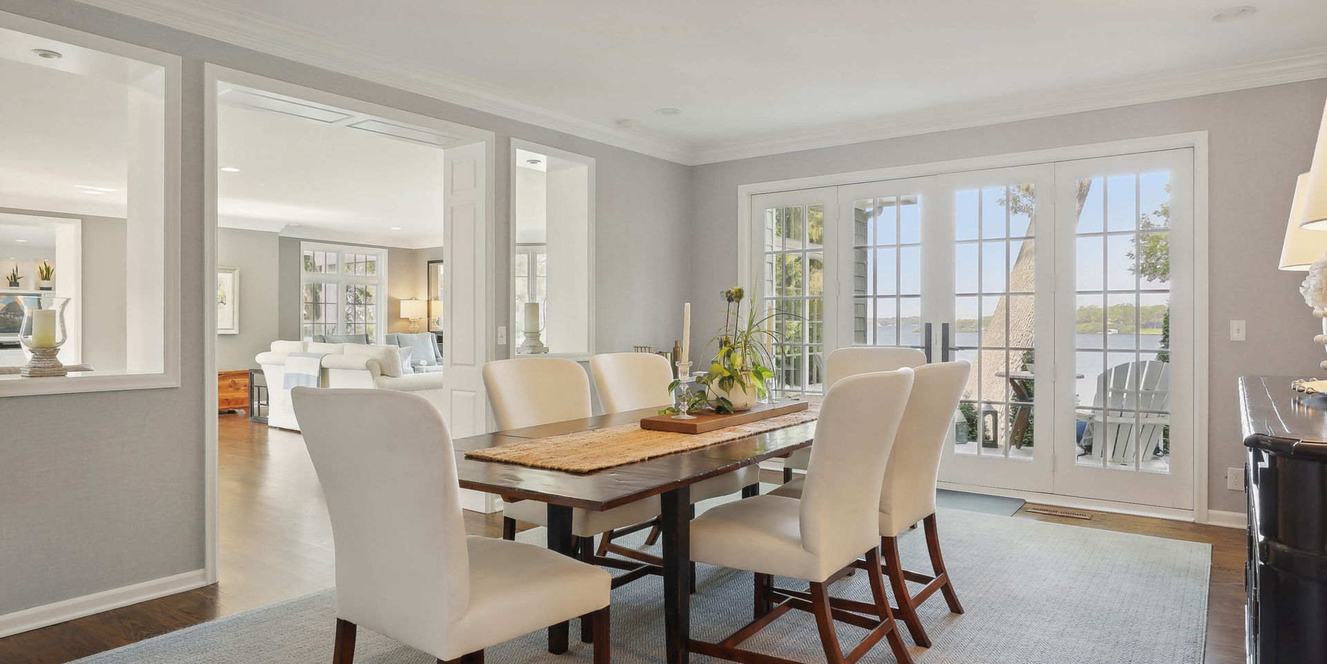 Step through lovely French doors to the pergola-covered decks for an amazing outdoor dining experience.